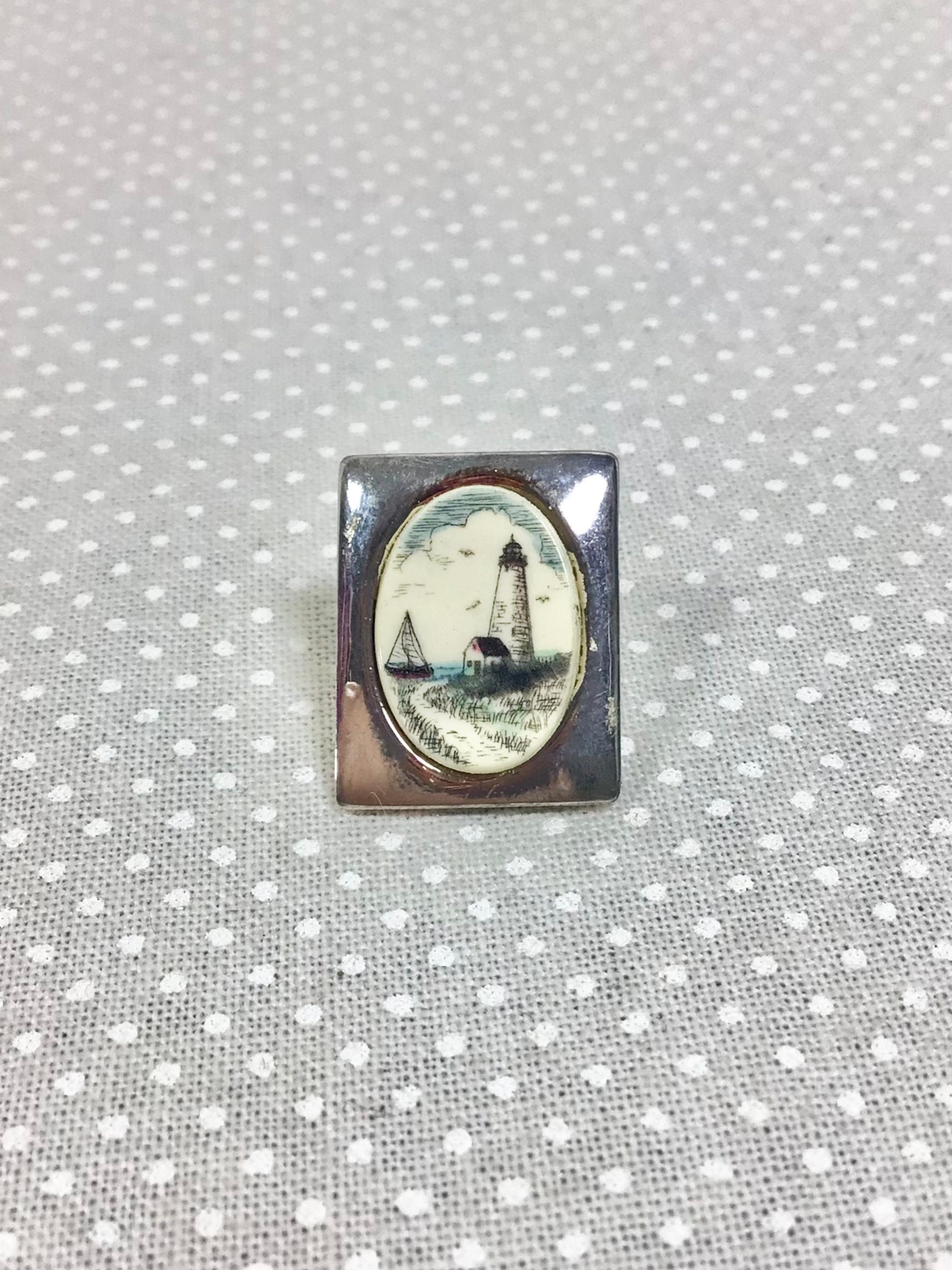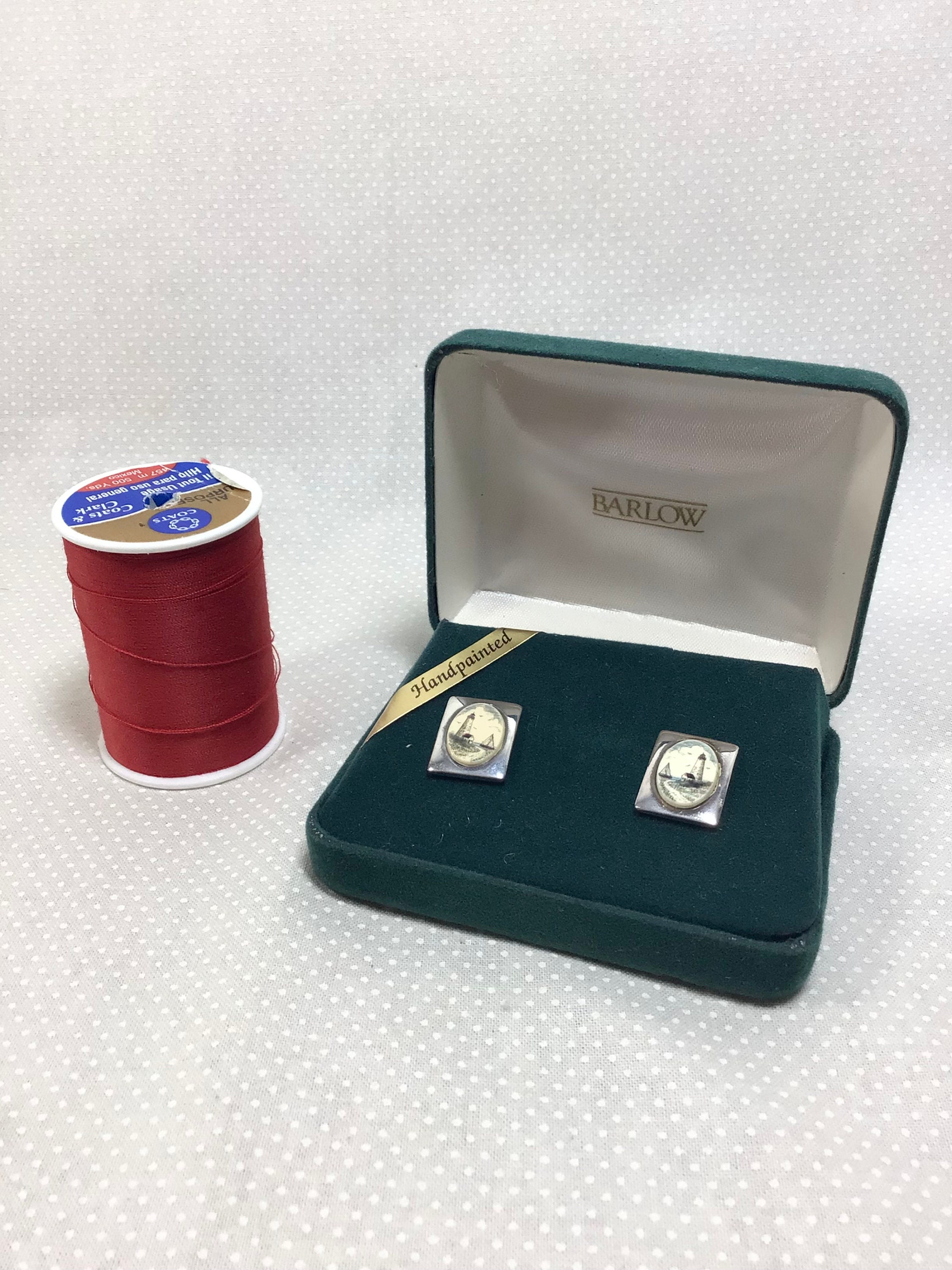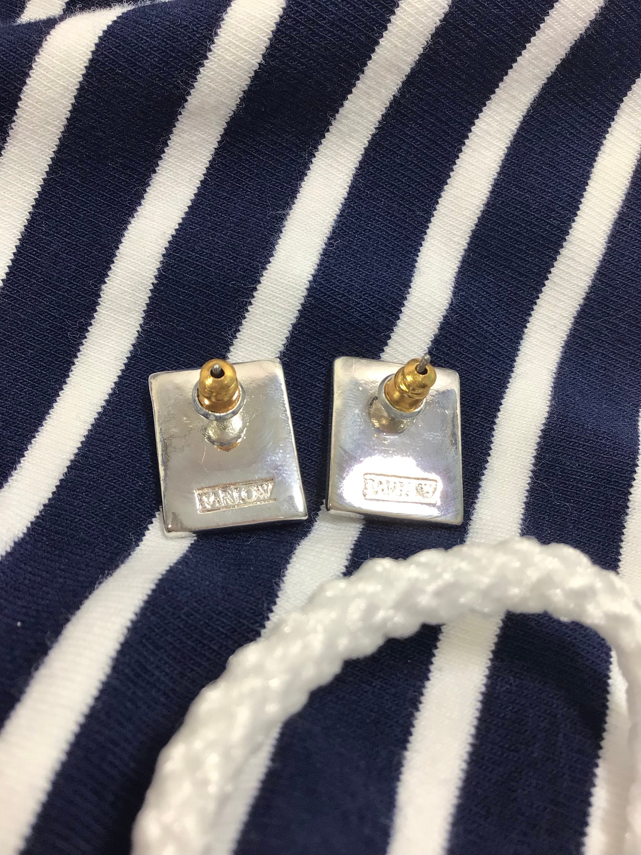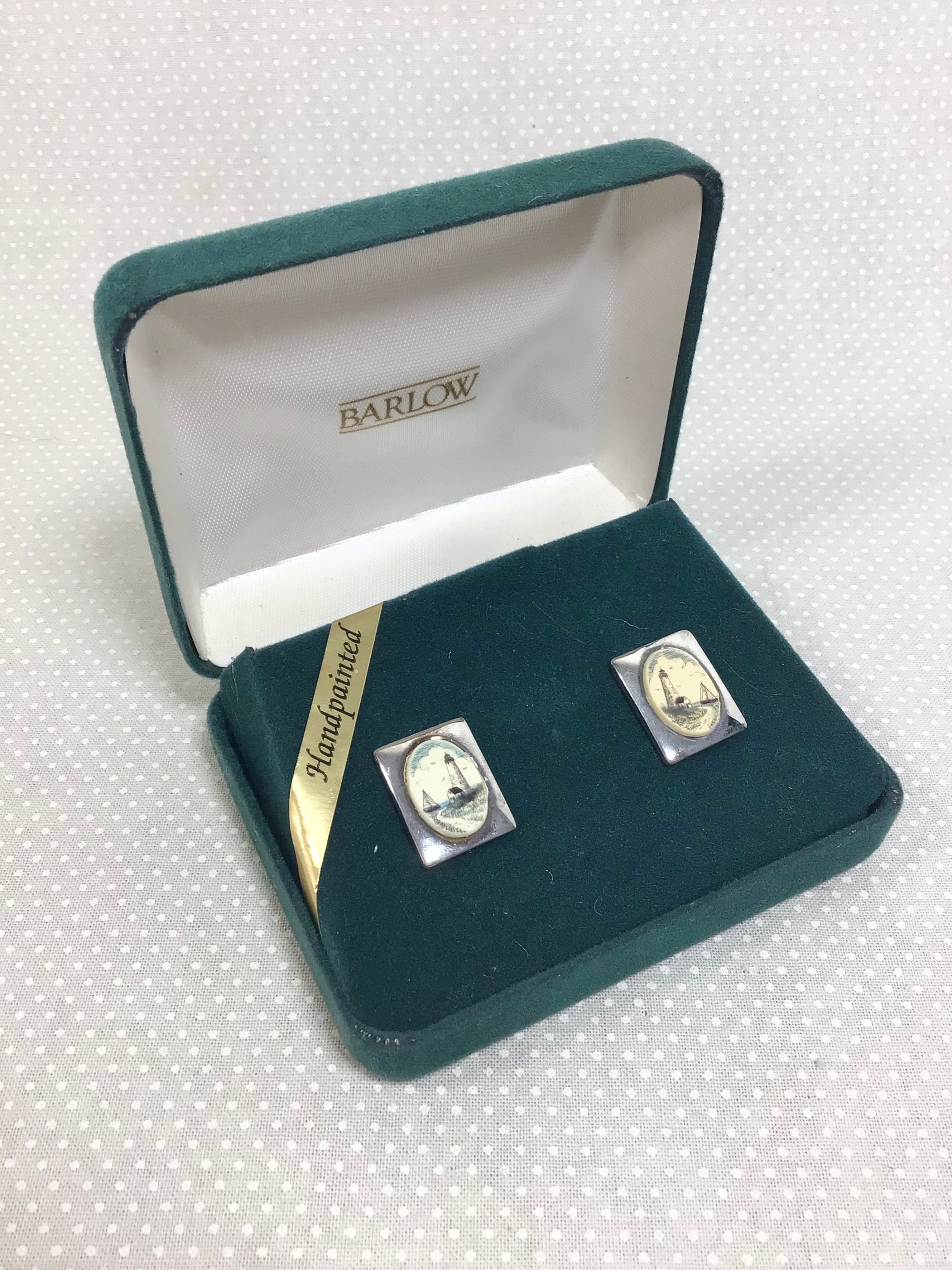 This pair of signed earrings are by “Barlow”. They are silver plated with the most adorable hand painted lighthouse seascapes on bone.