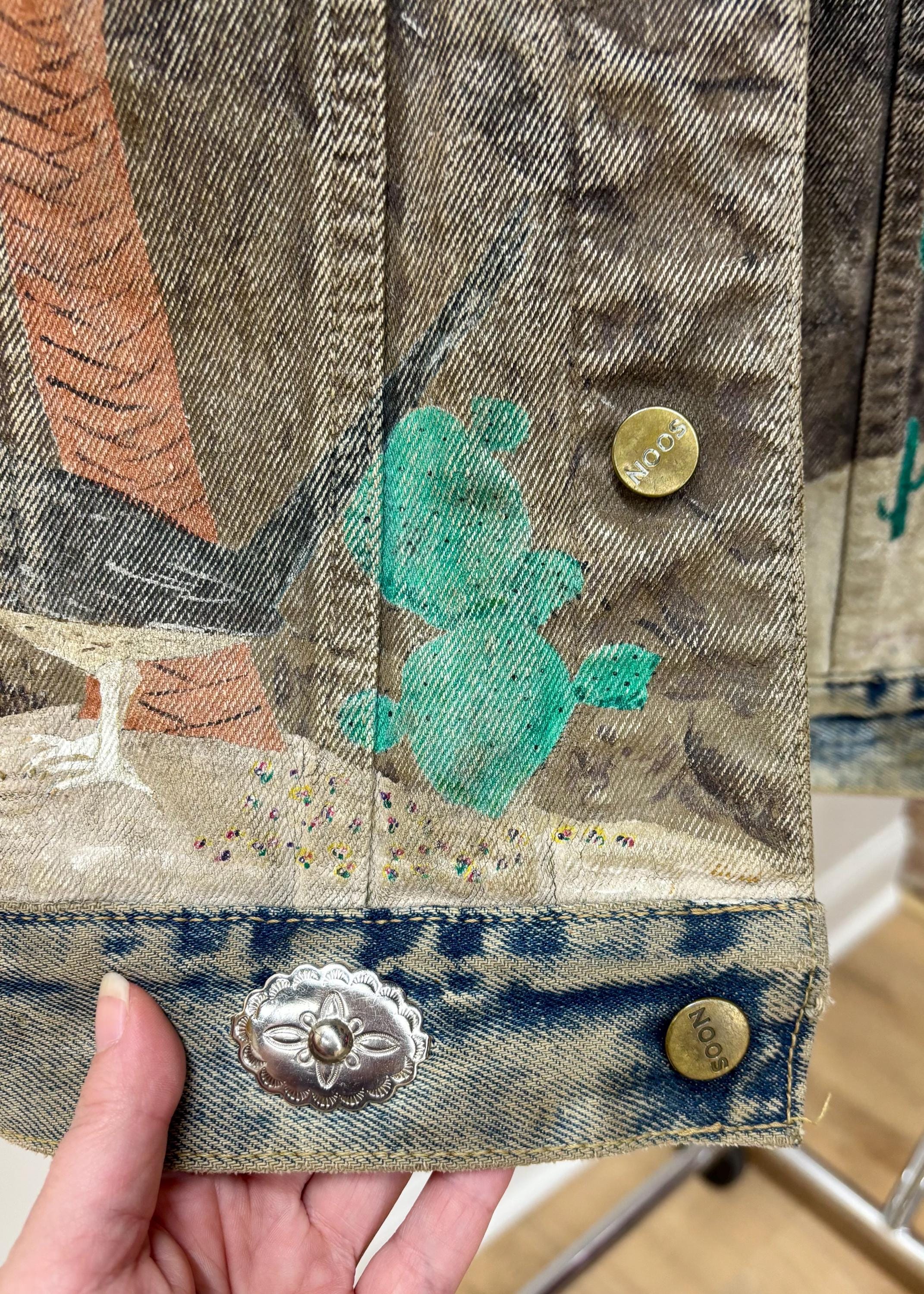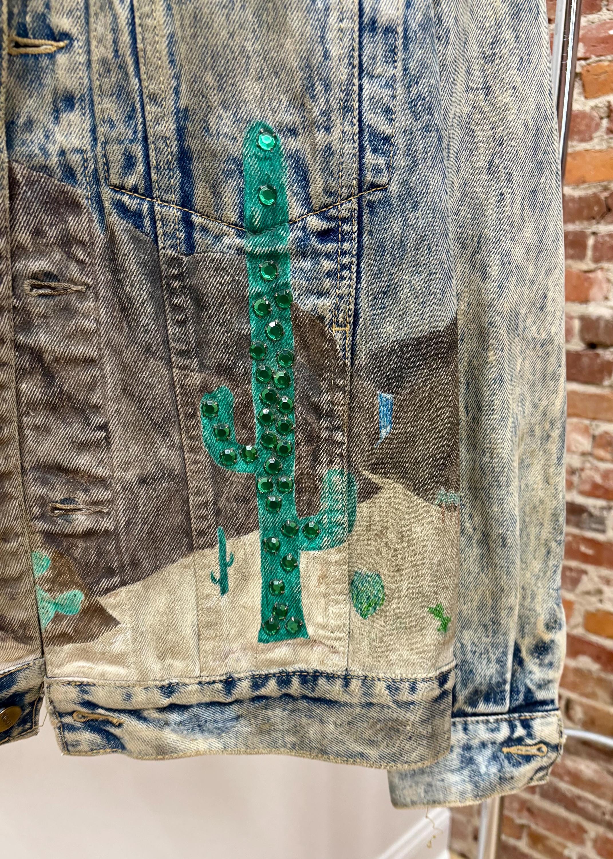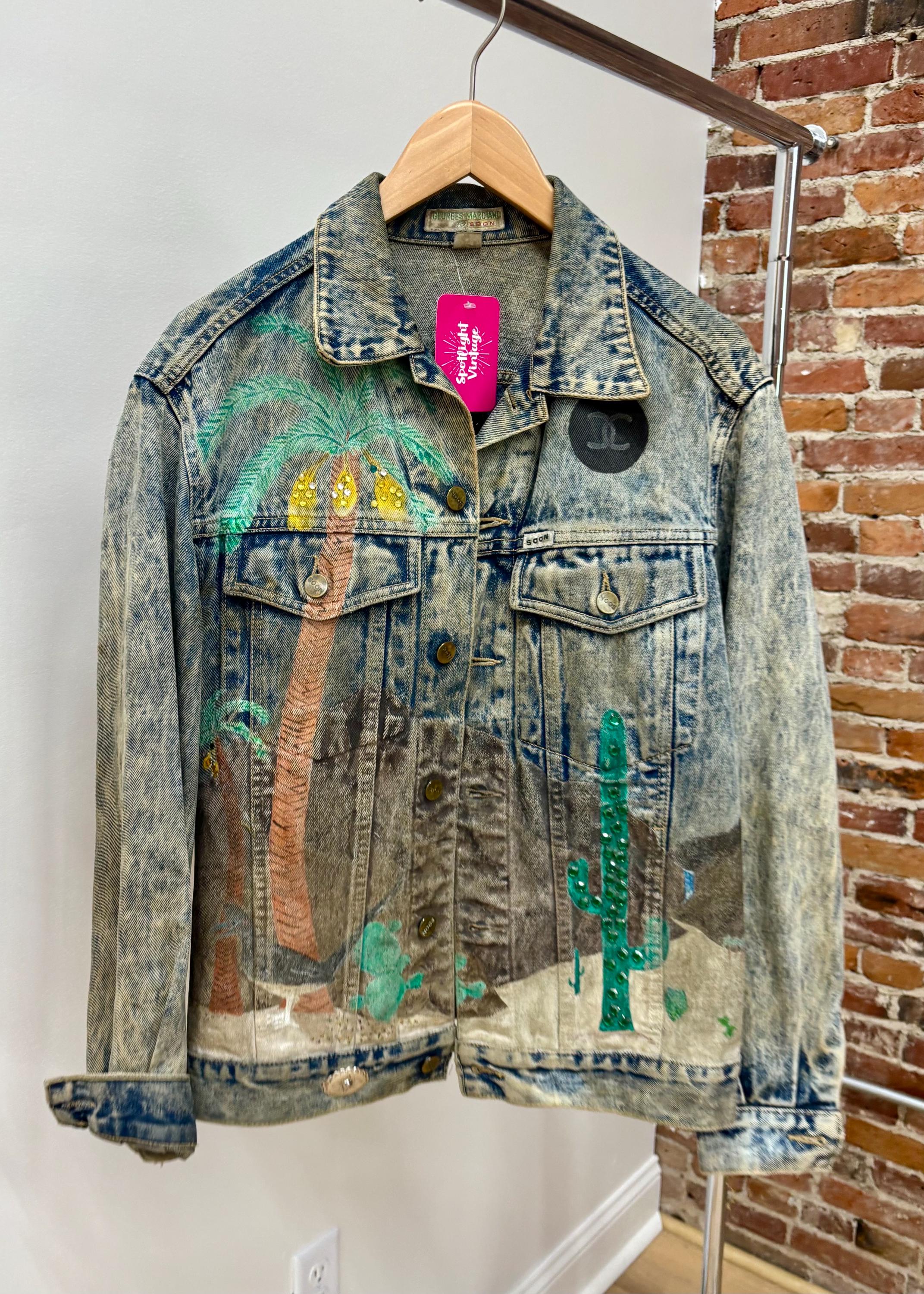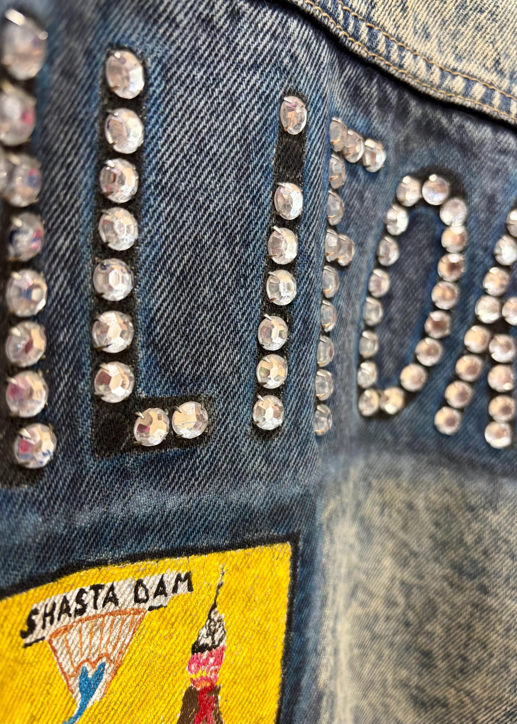 This hand painted and blinged out denim jacket is truly a vintage work of art!