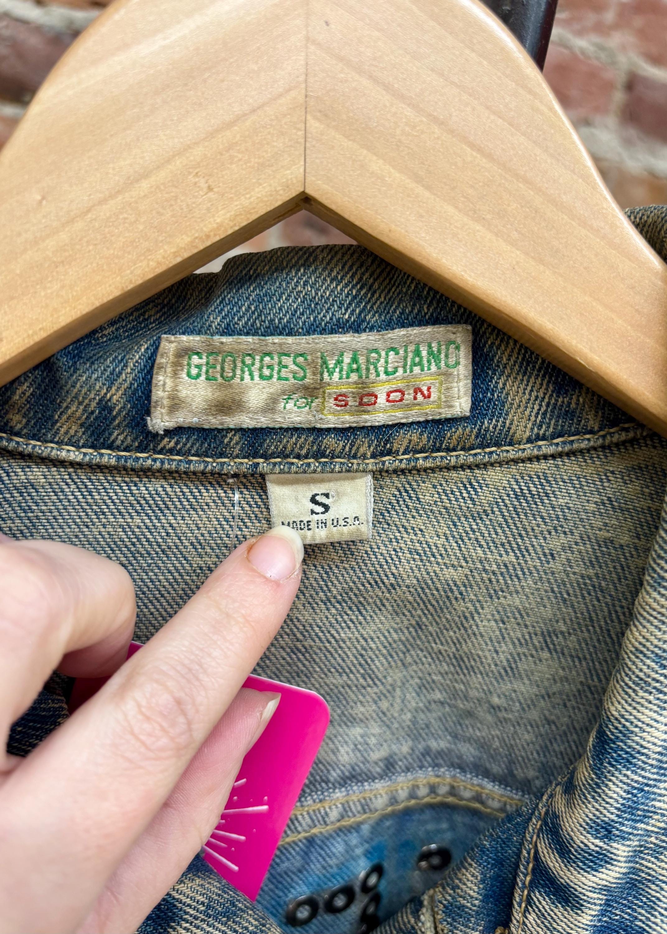 This piece was made in the USA during the late 1980s/early 1990s by Georges Marciano for Soon. It is marked as a vintage Men’s size small, but could also fit up to a women’s size Large. Please see measurements below to guarantee fit.