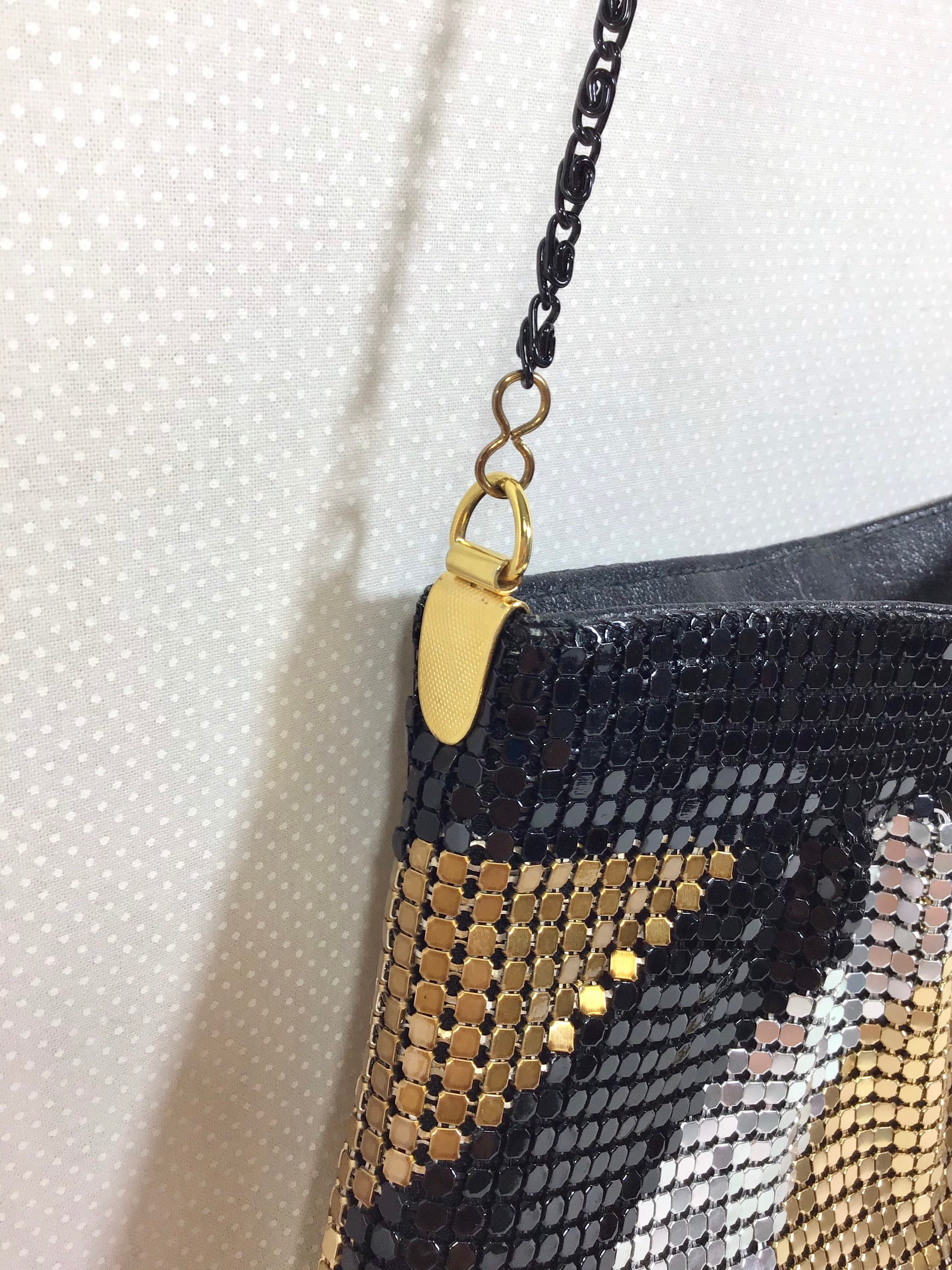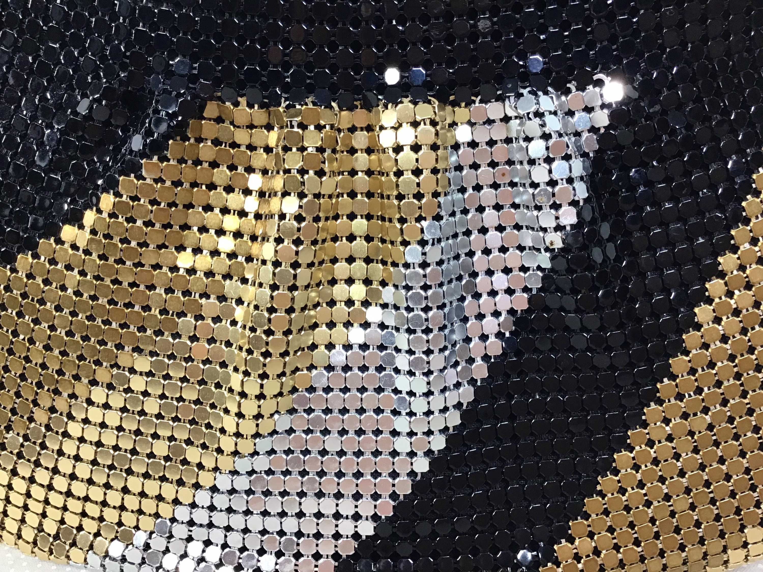 This purse was made in the 1980s and is constructed primarily from metal mesh.