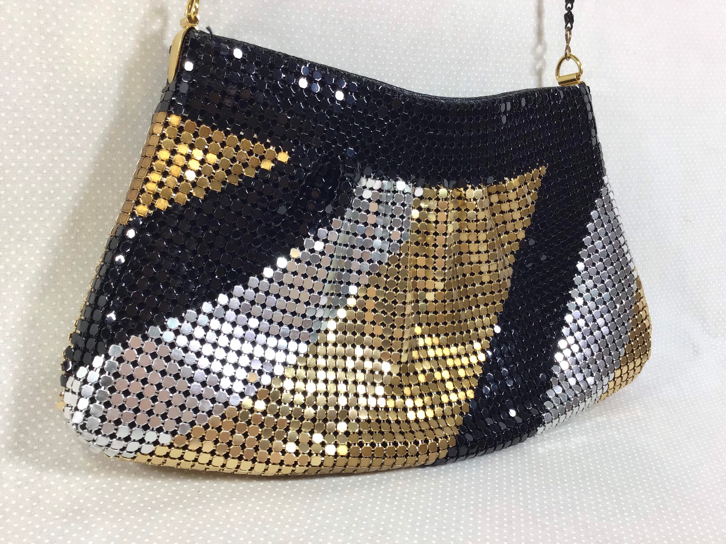 The striking metallic design is made up of gold, silver, bronze, and black waved stripes on both the front and back of the bag. The metal mesh has a smooth, satisfying texture that won’t snag on things or pinch your skin. The gold-tone brass hardware adds a sophisticated touch to this stylish accessory.